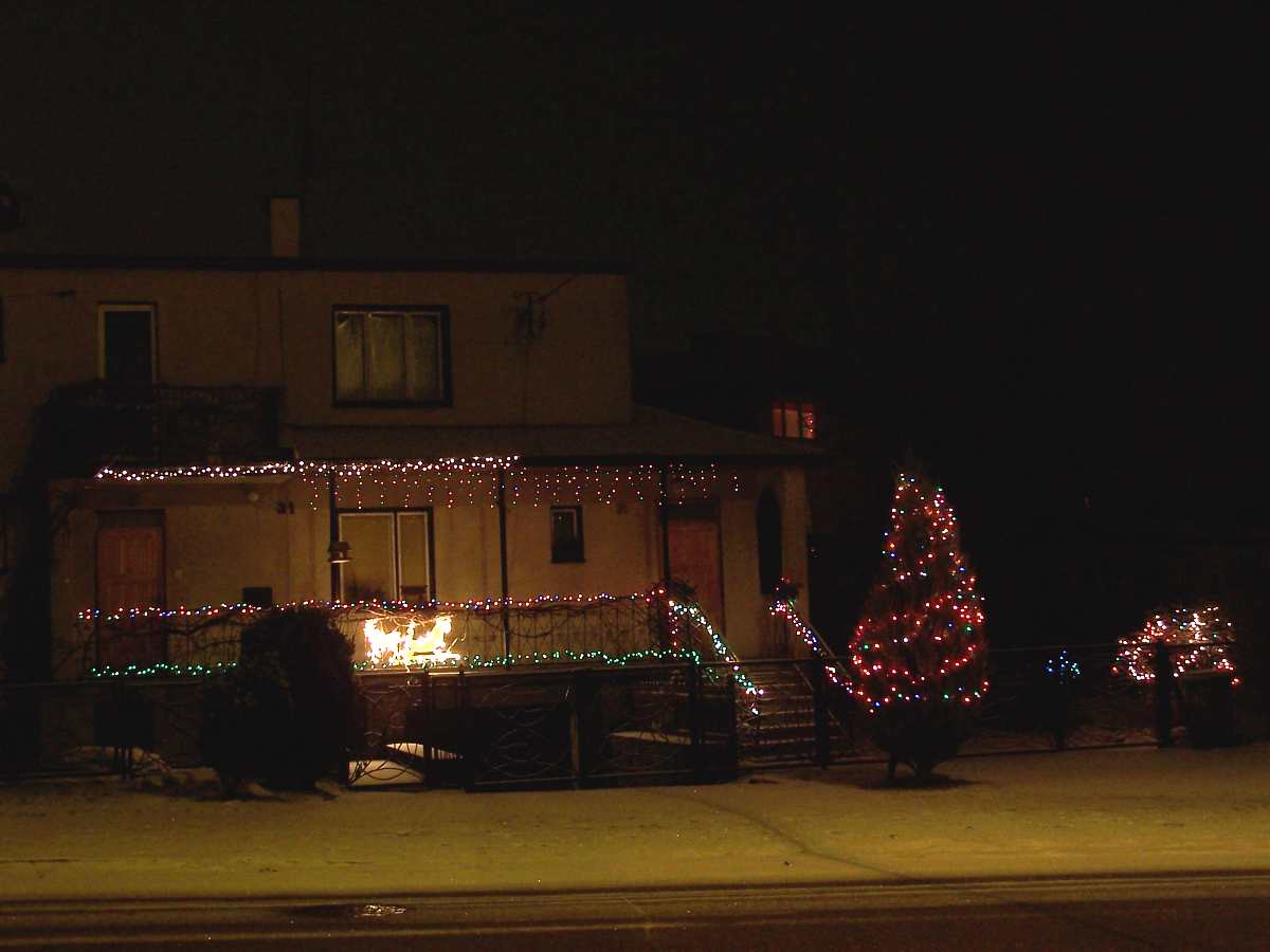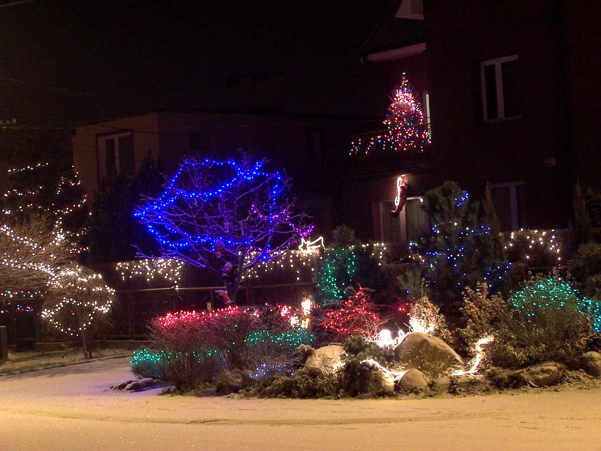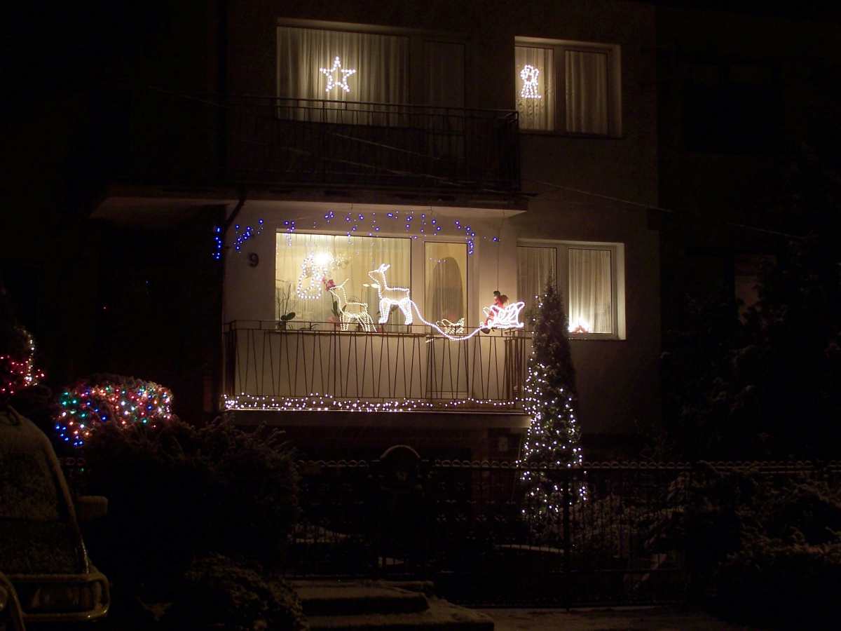 zorganizowanego przez Radę Osiedla Dajtki. Tak jak letni konkurs na najładniejszy ogród przydomowy, tak zimą zwłaszcza, kiedy zbliżają się święta Bożego Narodzenia i Nowy Rok taki konkurs integruje mieszkańców. Dajtki są dość specyficznym osiedlem, bo większość ludzi mających tu własne domy zna się z czasów ich budowy. Ale czas płynie i kiedyś młodzi stają się pokoleniem odchodzącym. Dlatego ważne jest organizowanie takich imprez, które mogłyby wciągnąć do wspólnoty młodszych i nowych Dajtkowiczów. Tej zimy można było zaobserwować nieco mniej dekorowanych domów niż w latach poprzednich. Być może, że było to spowodowane dość niespodziewanym atakiem zimy, a może i trochę tak zwanym kryzysem. Każda pora roku ma swoje walory wizualne i zima również, ale tylko wtedy, gdy wspaniałym białym puchem pokryje smutnie wyglądającą wtedy przyrodę. Jednak często, przynajmniej w ostatnich latach tej naturalnej dekoracji brakowało. Pewnie z takich m.in. powodów na przykład w Ameryce Północnej mieszkańcy licznie dekorują swoje domy już na początku grudnia i wtedy problem zaskoczenia zimowego chłodu odpada, a szaruga tej pory roku ma wtedy swoje walory, bo uwypukla wizualne pomysły mieszkańców.