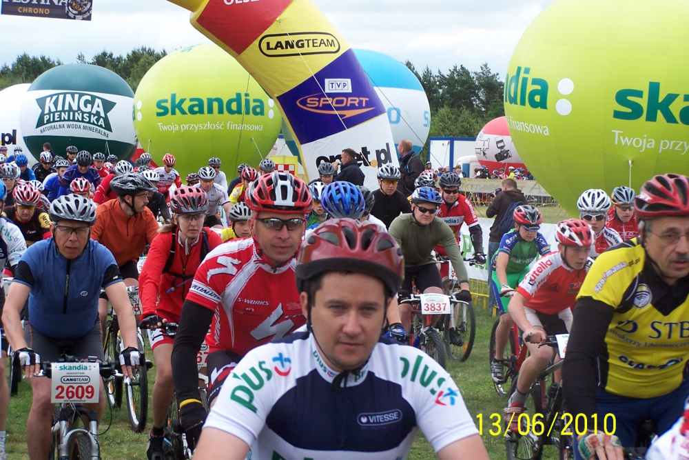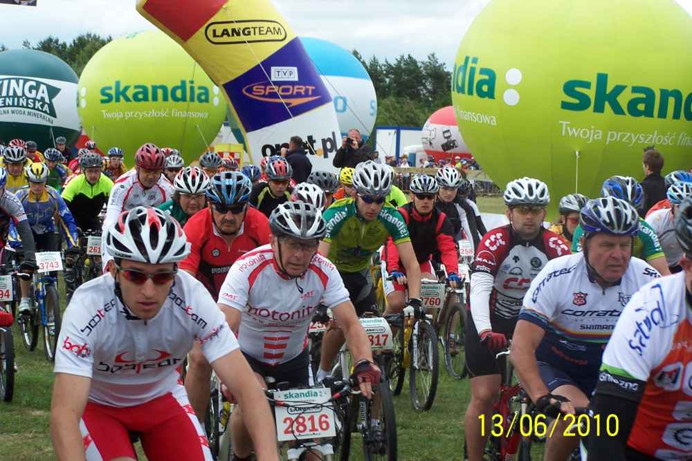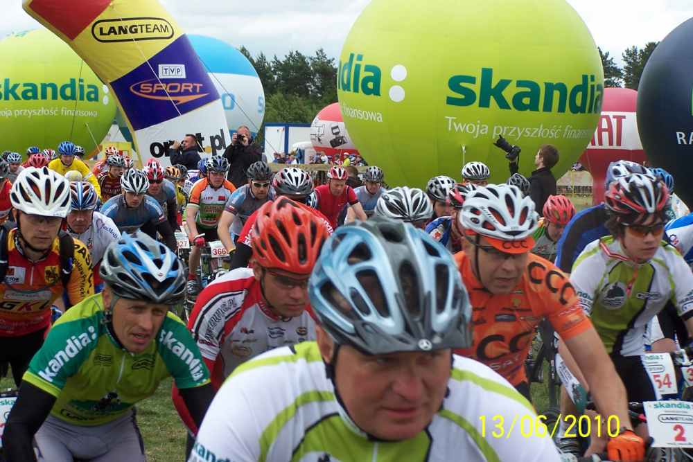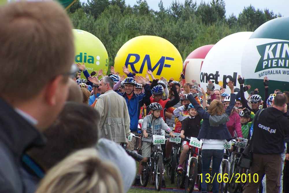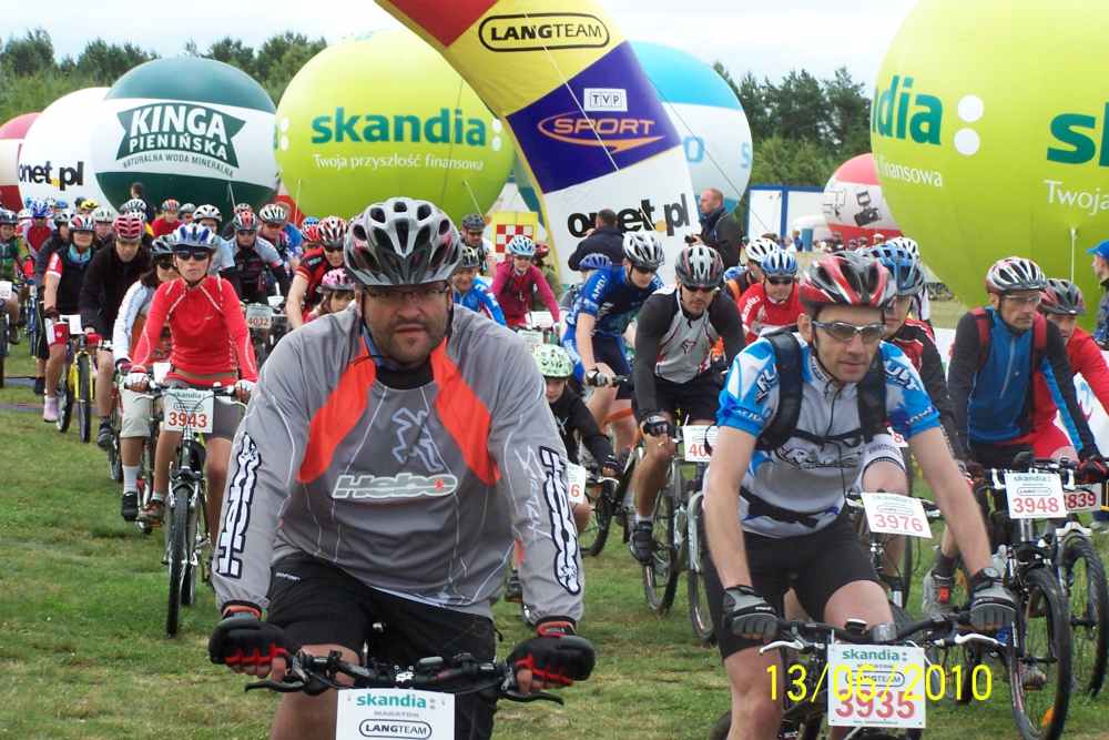 | Byłem w sobotę i niedzielę na lotnisku, gdzie był start i meta wszystkich wyścigów i podziwiałem rozmach imprezy, organizację no i przede wszystkim uczestników. Takiej ilości doskonale wyposażonych, profesjonalnie ubranych i sprawnych amatorów jazdy na rowerze nie zobaczy się na raz nigdzie! Ponieważ można było wybierać między długościami tras od 73 km, 53 km, 28 km i 8 km każdy mógł wybrać coś stosownie do swojej kondycji. Bardzo lubię jeździć na rowerze górskim i gdyby nie to, że nie miałem odpowiedniego ubrania a zwłaszcza kasku, pojechałbym z innymi, bo na przykład trasa 8 kilometrów w naszym lesie nie sprawiała nikomu wielkich trudności. Chodziło przecież o to, żeby zażyć radości rywalizacji i poczuć się sprawnym. |