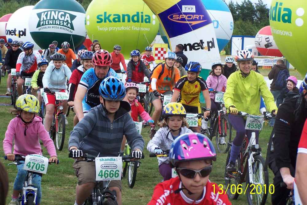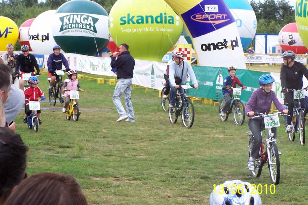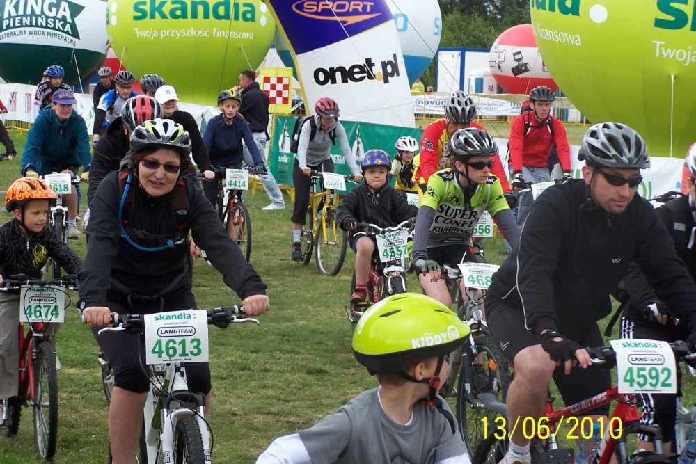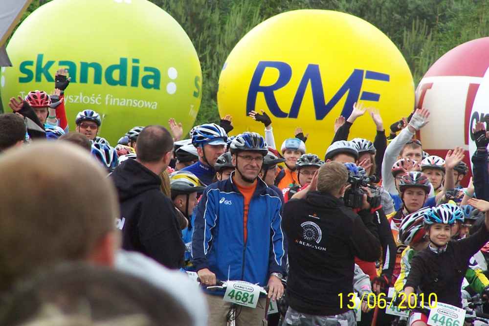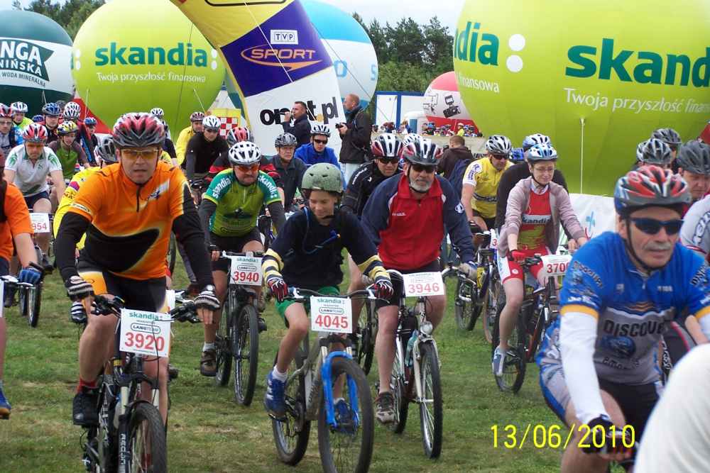 | Byłem w sobotę i niedzielę na lotnisku, gdzie był start i meta wszystkich wyścigów i podziwiałem rozmach imprezy, organizację no i przede wszystkim uczestników. Takiej ilości doskonale wyposażonych, profesjonalnie ubranych i sprawnych amatorów jazdy na rowerze nie zobaczy się na raz nigdzie! Ponieważ można było wybierać między długościami tras od 73 km, 53 km, 28 km i 8 km każdy mógł wybrać coś stosownie do swojej kondycji. Bardzo lubię jeździć na rowerze górskim i gdyby nie to, że nie miałem odpowiedniego ubrania a zwłaszcza kasku, pojechałbym z innymi, bo na przykład trasa 8 kilometrów w naszym lesie nie sprawiała nikomu wielkich trudności. Chodziło przecież o to, żeby zażyć radości rywalizacji i poczuć się sprawnym. |