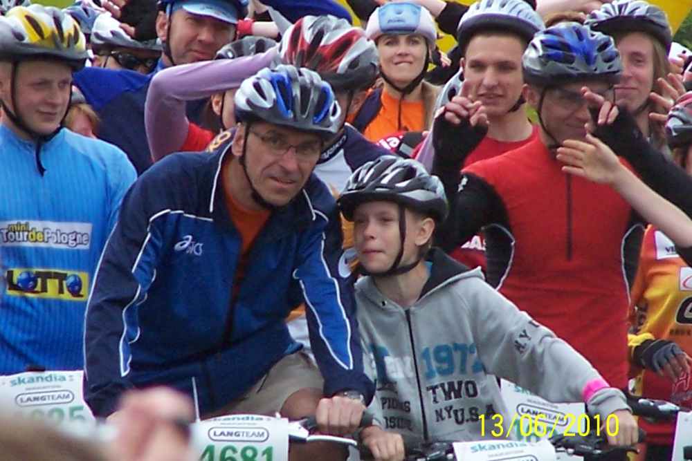 że dał się namówić na jazdę razem z synem, ale na trasie 8 km. |