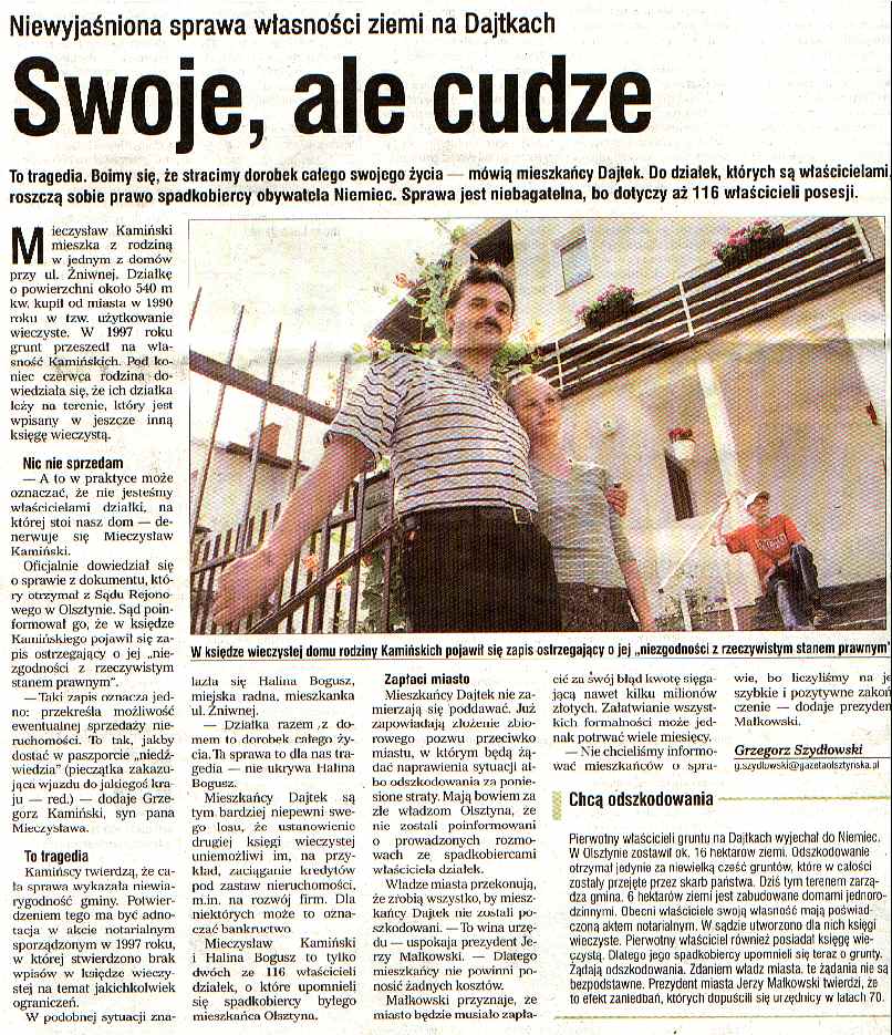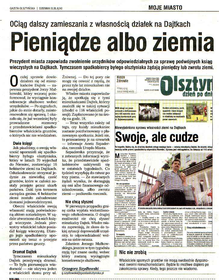 | Z Gazety Olsztyńskiej (08.07.05.) | ||||||||||||