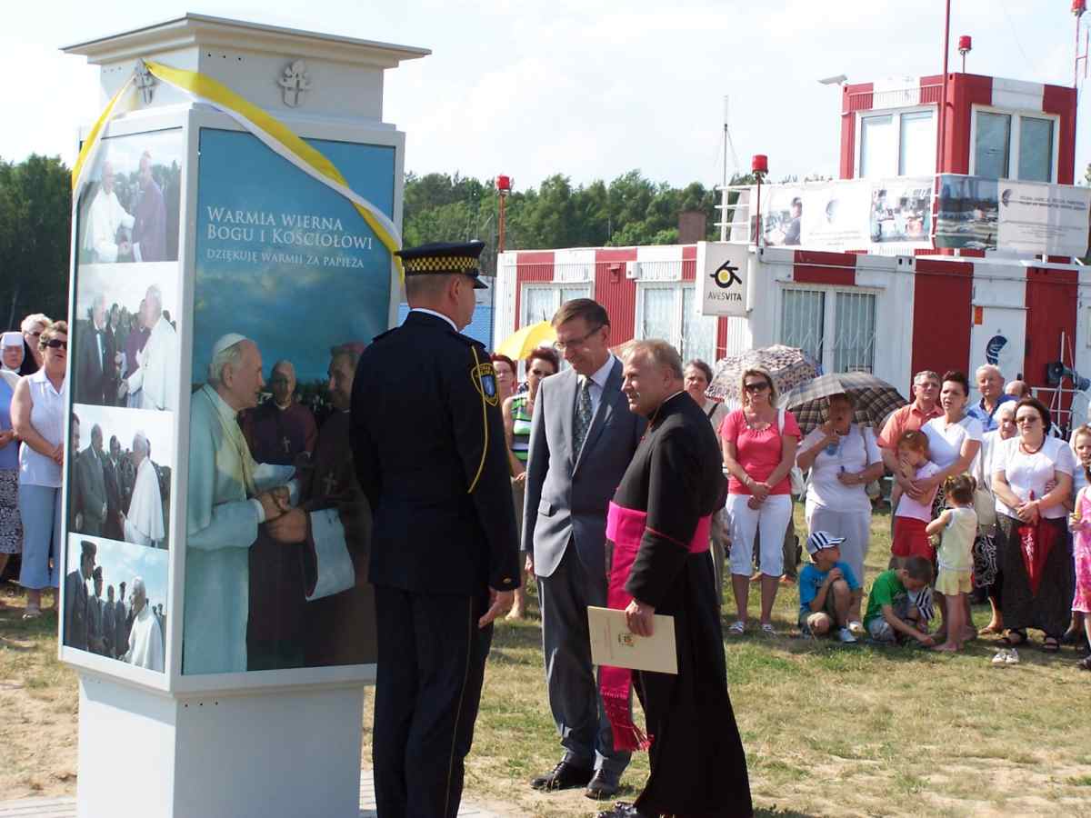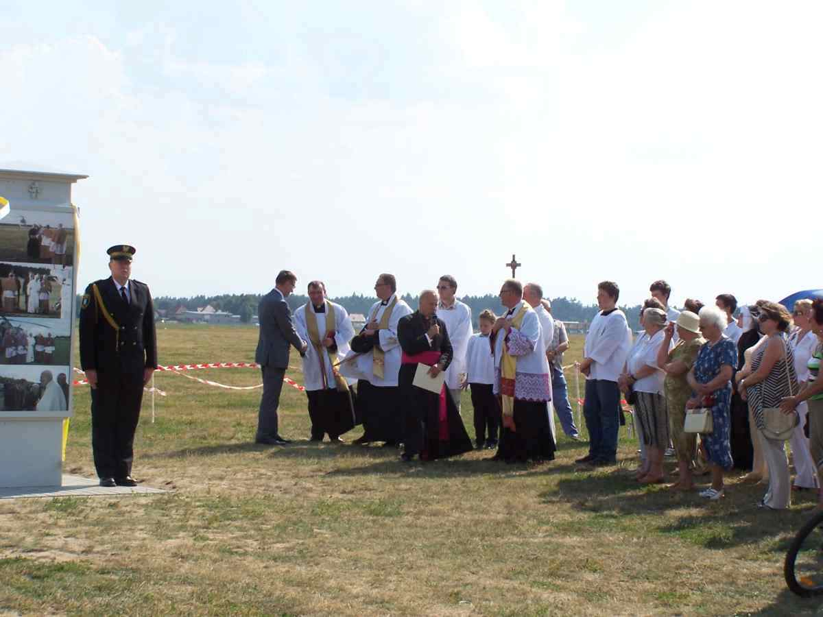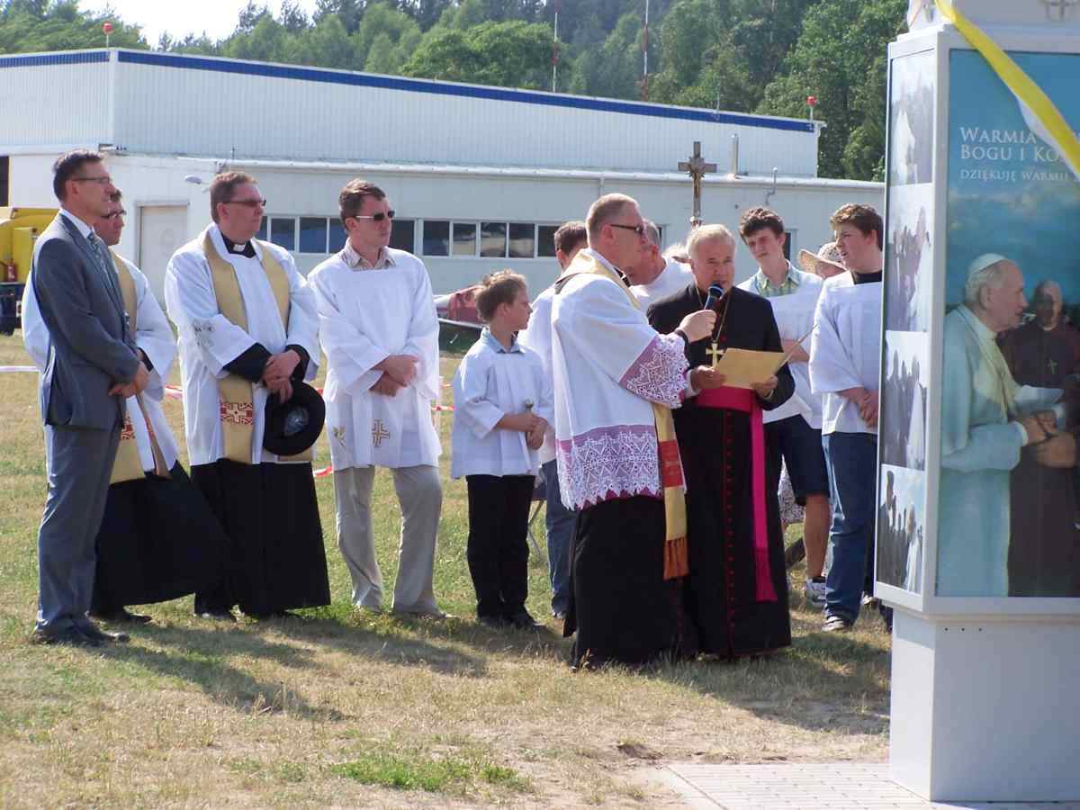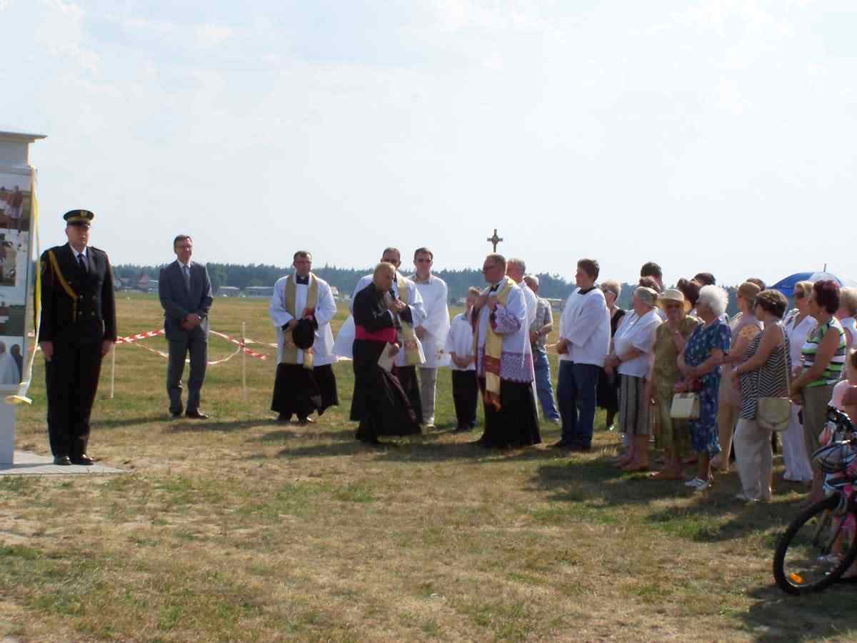 Uroczystość poświęcenia obelisku upamiętniającego pobyt Papieża Jana Pawła II na lotnisku w Dajtkach.