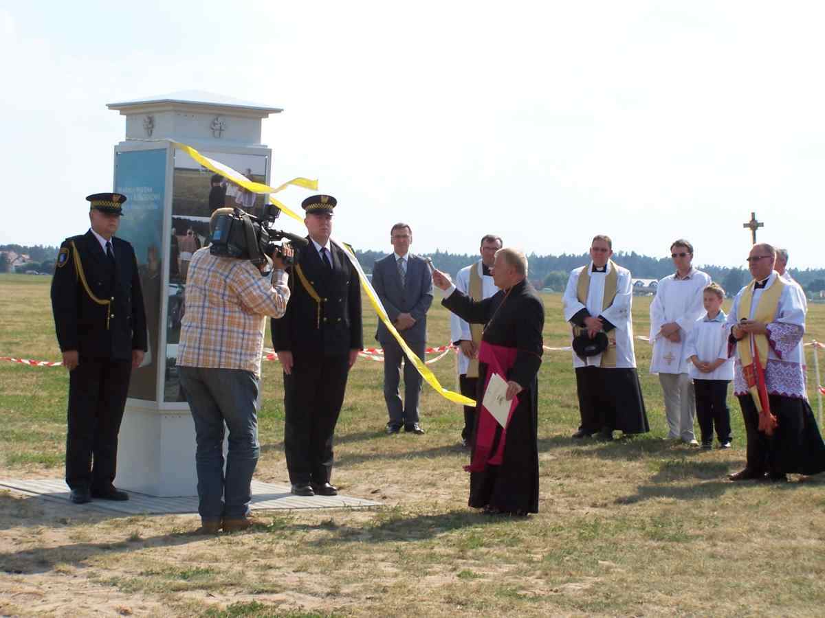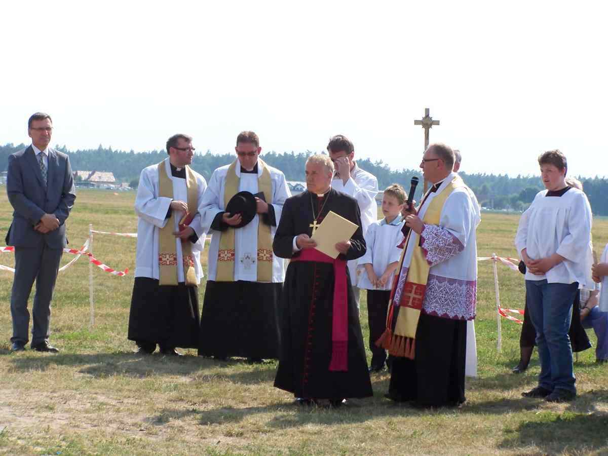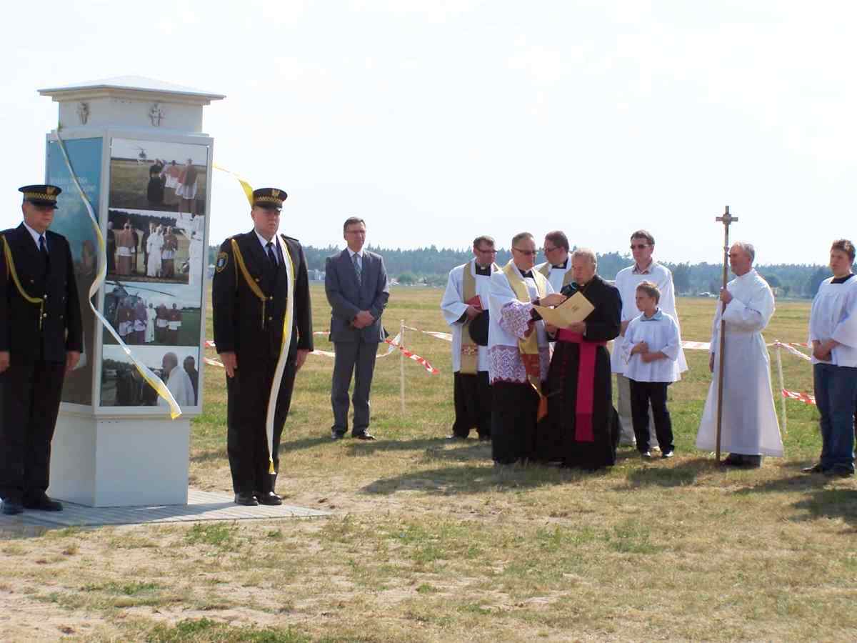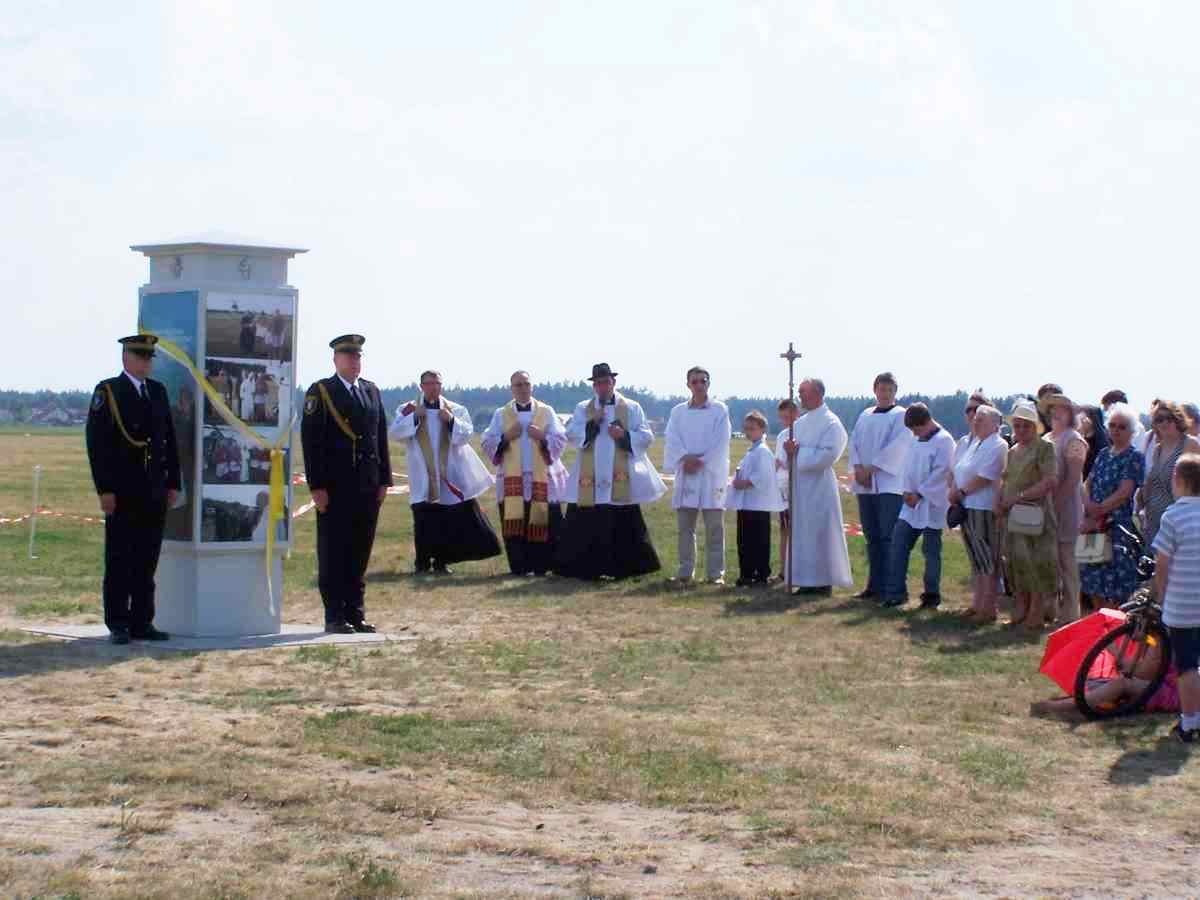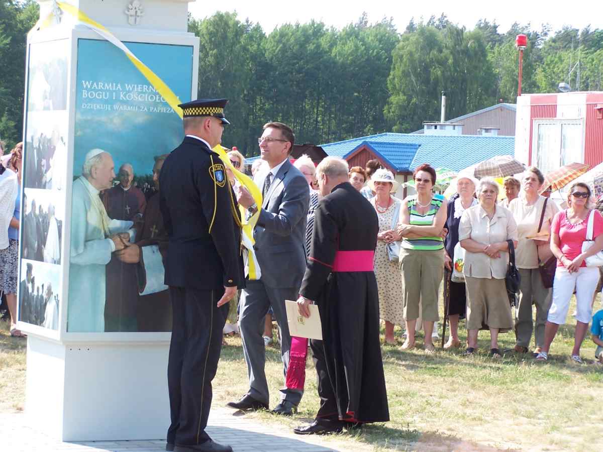 Uroczystość poświęcenia obelisku upamiętniającego pobyt Papieża Jana Pawła II na lotnisku w Dajtkach.