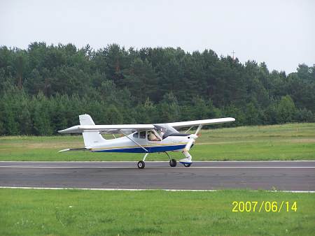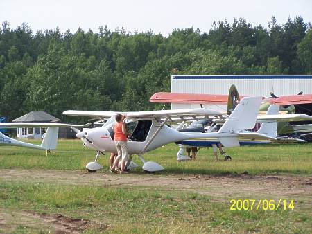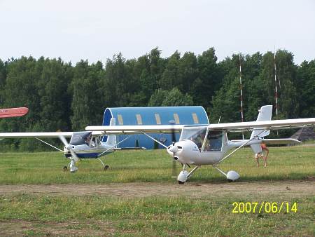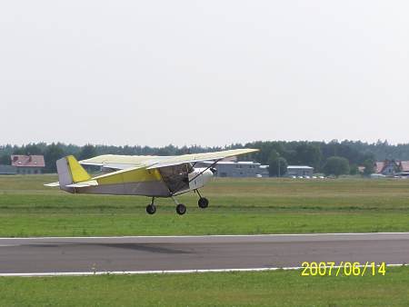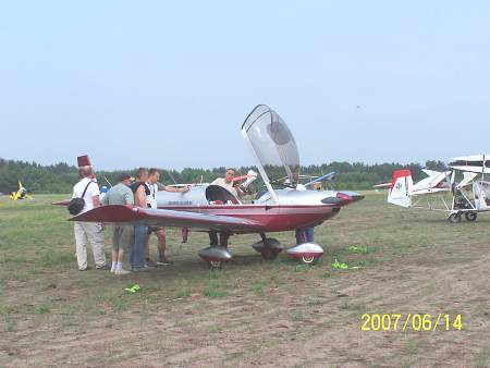 | Archiwum | Takiej galerii mikrolotów w Olsztynie nigdy jeszcze nie było. Te ultralekkie maszyny łatające przyleciały (niektóre samodzielnie) do nas z Francji w ramach wycieczki dookoła Polski pod nazwą "La Polka". Waga tych urządzeń latających nie może przekroczyć 100 funtów angielskich, czyli 454 kilogramy! Cześć z pokazanych na naszym lotnisku samolocików to jakby mechaniczne ważki! Na szkielecie z lekkich rurek naciągnięte jest coś w rodzaju tkaniny laminowanej, pod słońcem prawie pół przeźroczystej. A już zupełnym dla laika, można by rzec kuriozum, było przelecenie o własnych siłach, bardzo bogato wyposażonej takiej zupełnie diabelskiej maszynerii, jaką jest wiatrakowiec! To rodzaj malutkiego helikoptera, ale tylko z pozoru! Duże śmigło umieszczone nad głowami pilotów wcale nie służy do napędzania tej latającej (i to podobno bardzo bezpiecznie i stabilnie) maszynerii. Ono obraca się samodzielnie, bez żadnego napędu i jest rodzajem skrzydła. Ten, ładnie wyglądający mechaniczny owad napędzany jest tak samo jak motolotnia. | ||||||||||