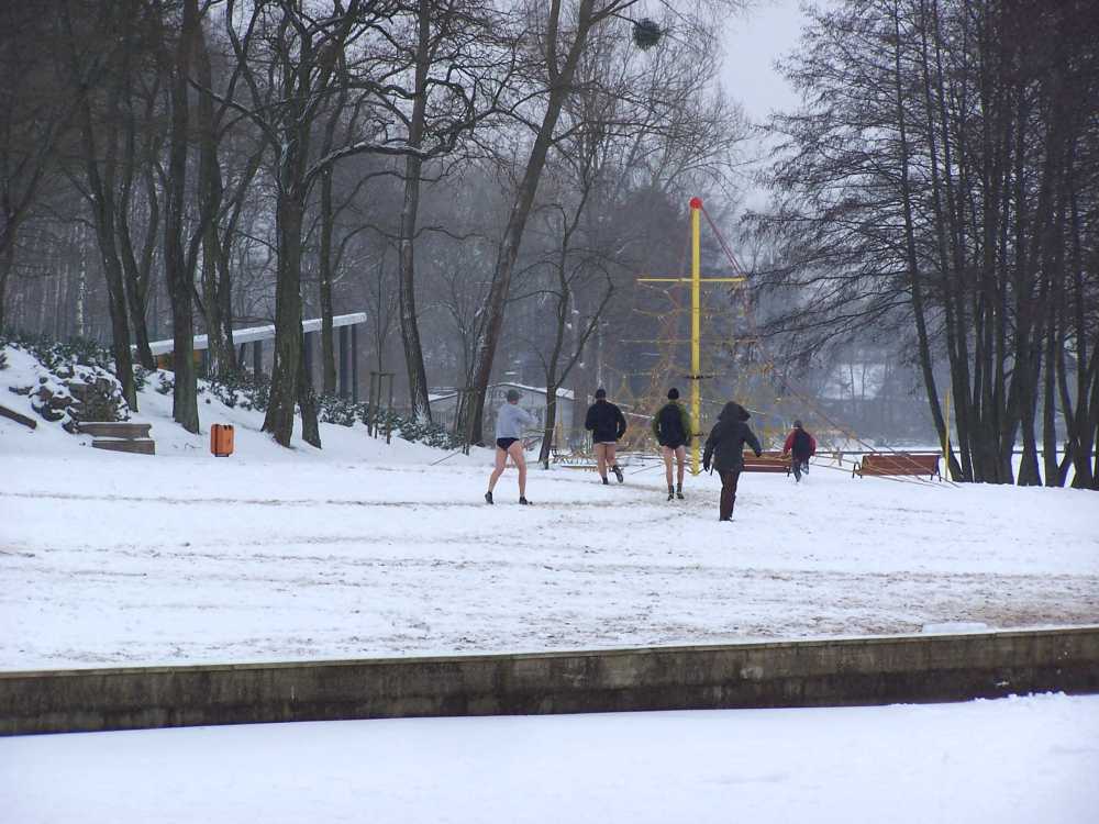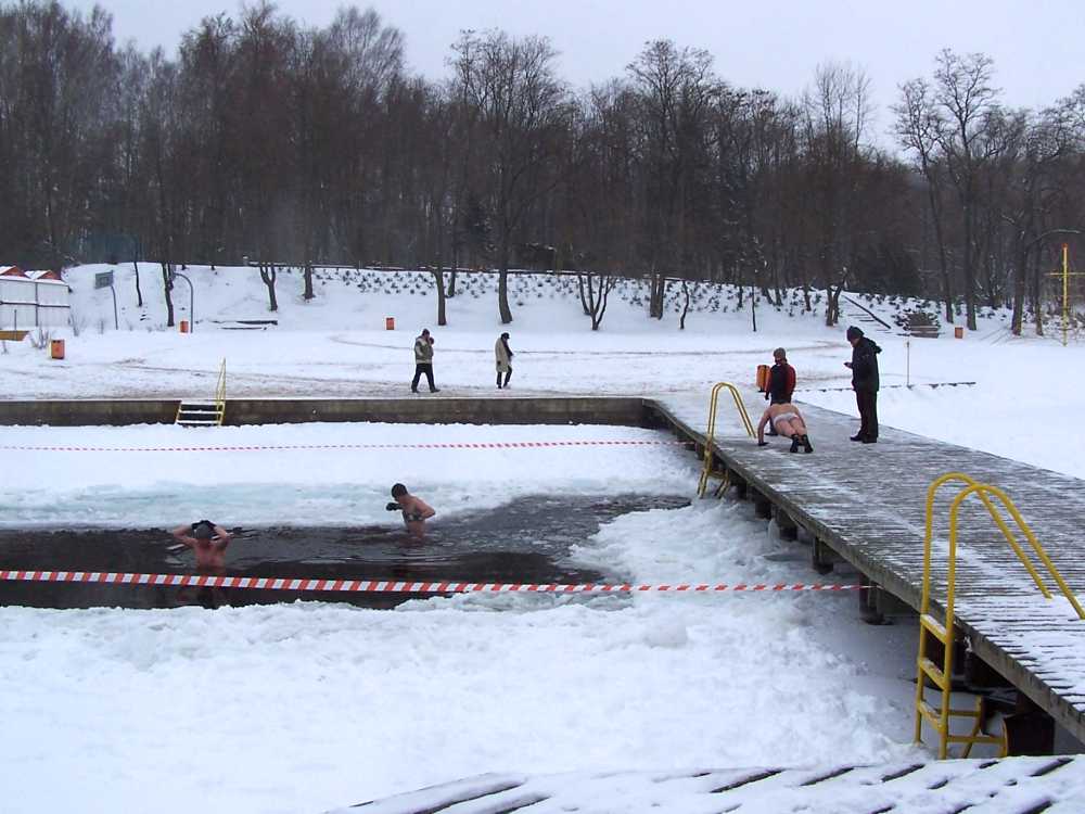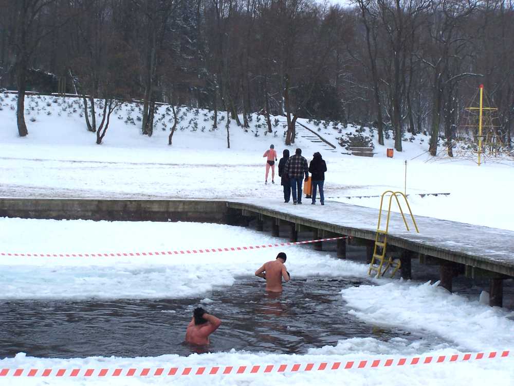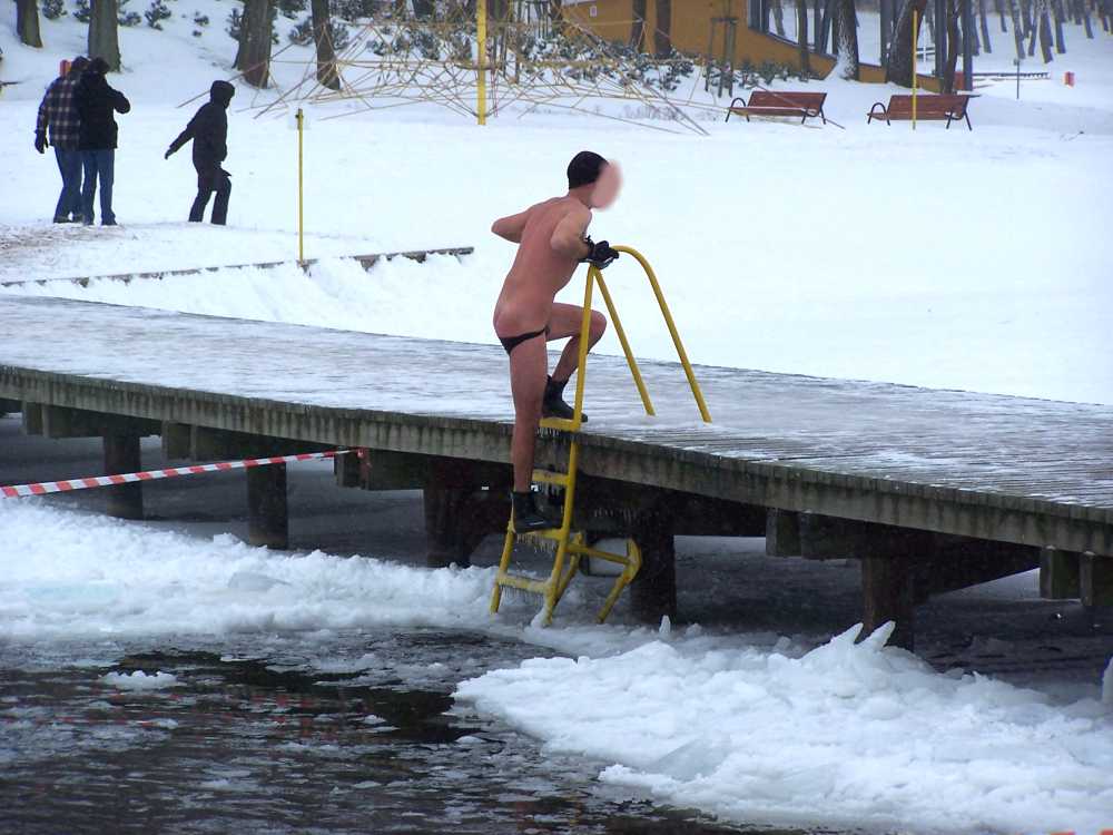 czy rozgrzewce (?), czy oziębieniu (!) wskoczyli do przerębla! |