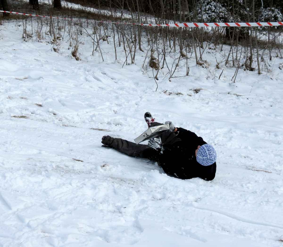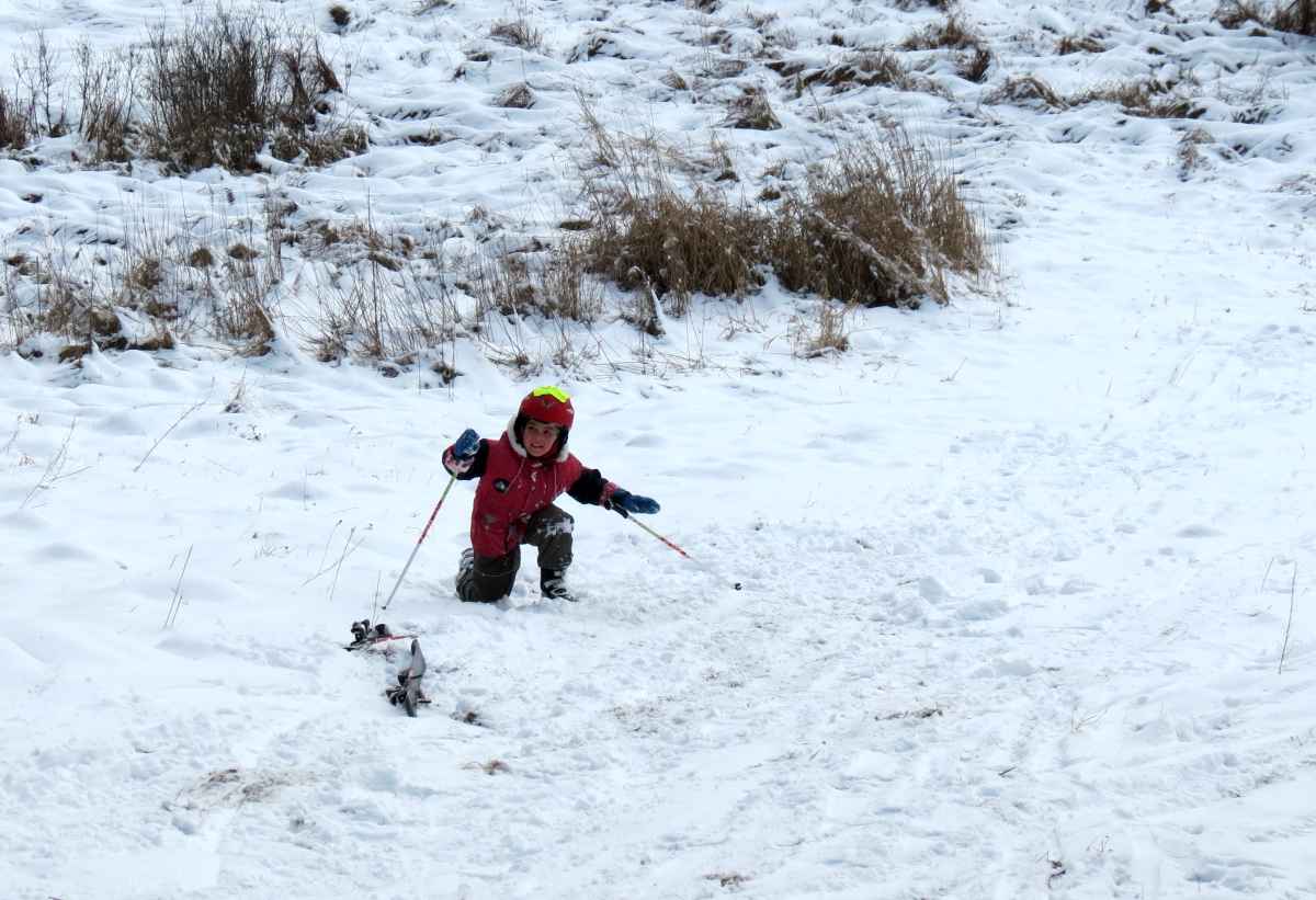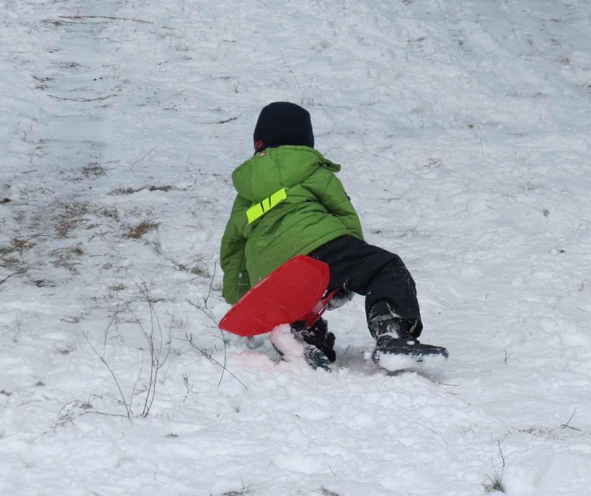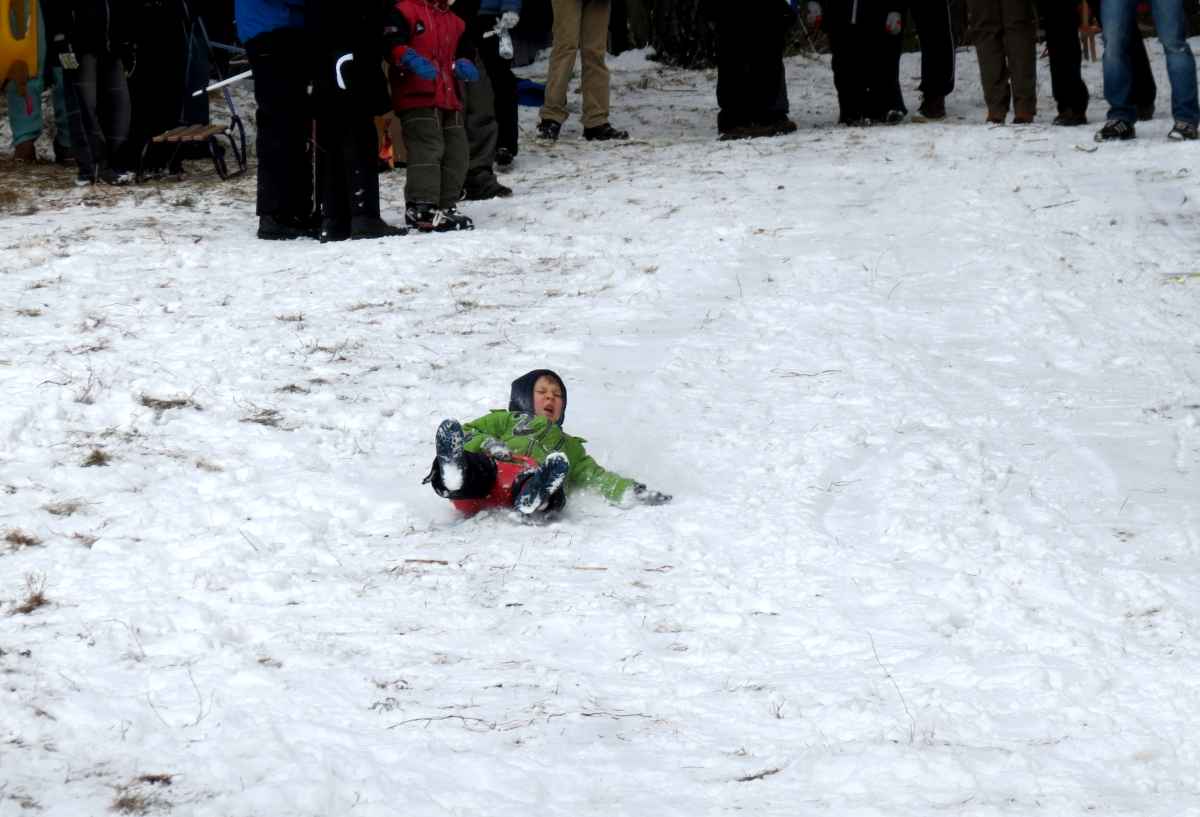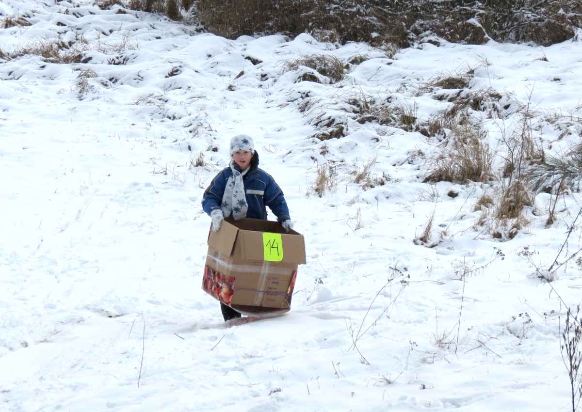 | Tu już zupełnie się nie dało konkurować w zjeżdżaniu! Torba na zakupy to niestety nie sanki, mimo odwagi jaką się wykazał maluch ! | ||