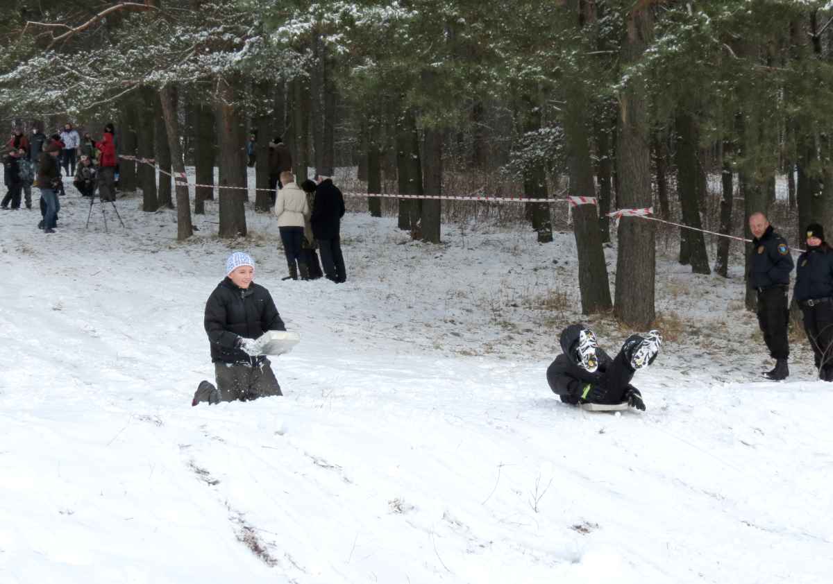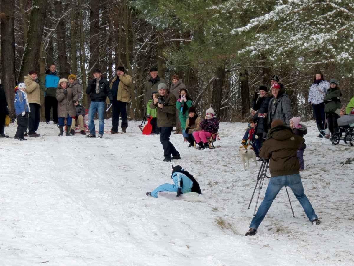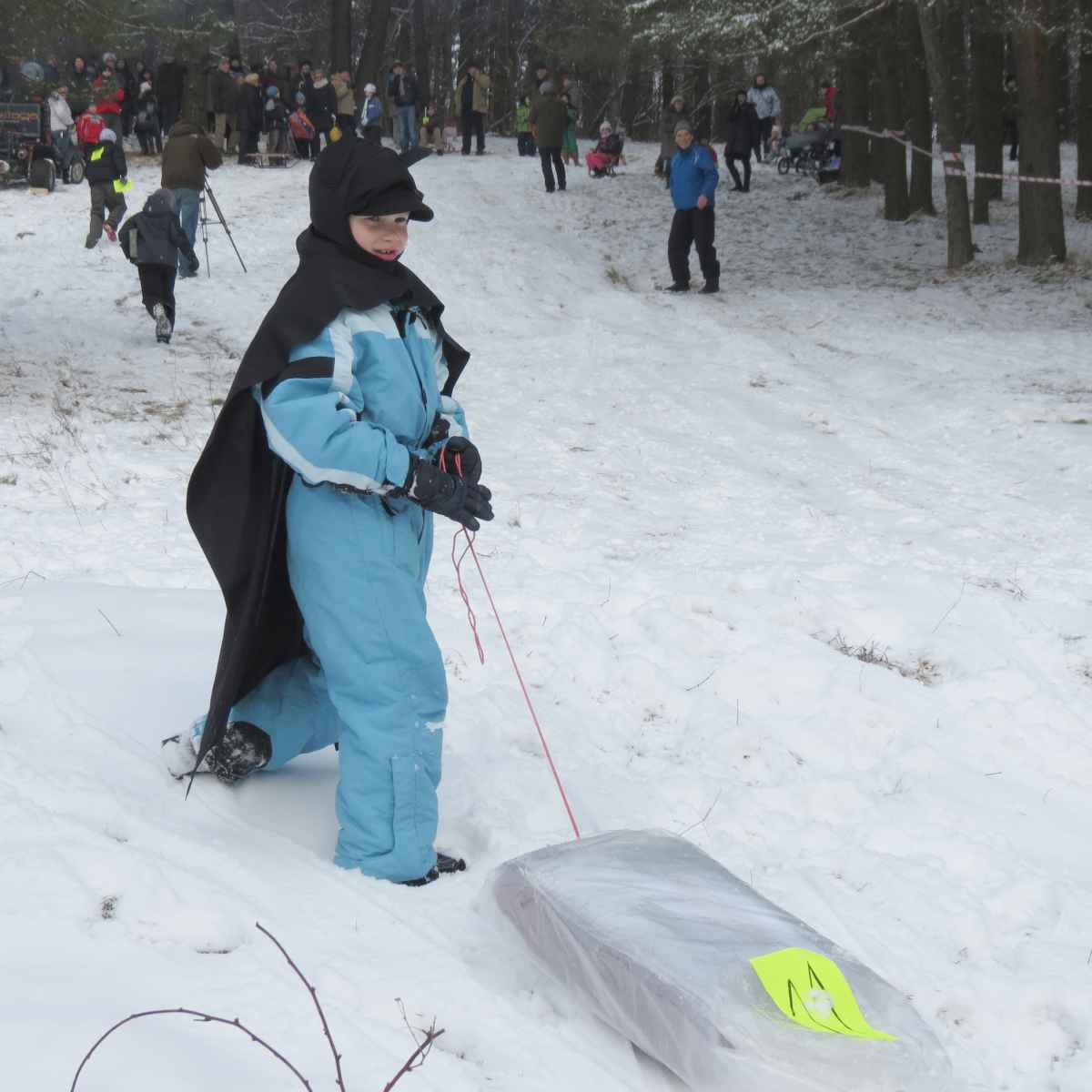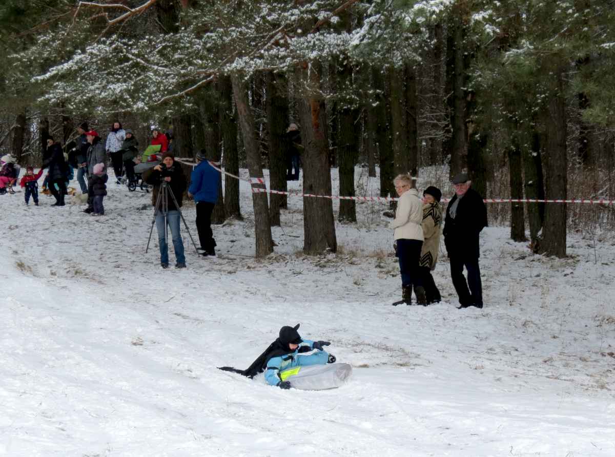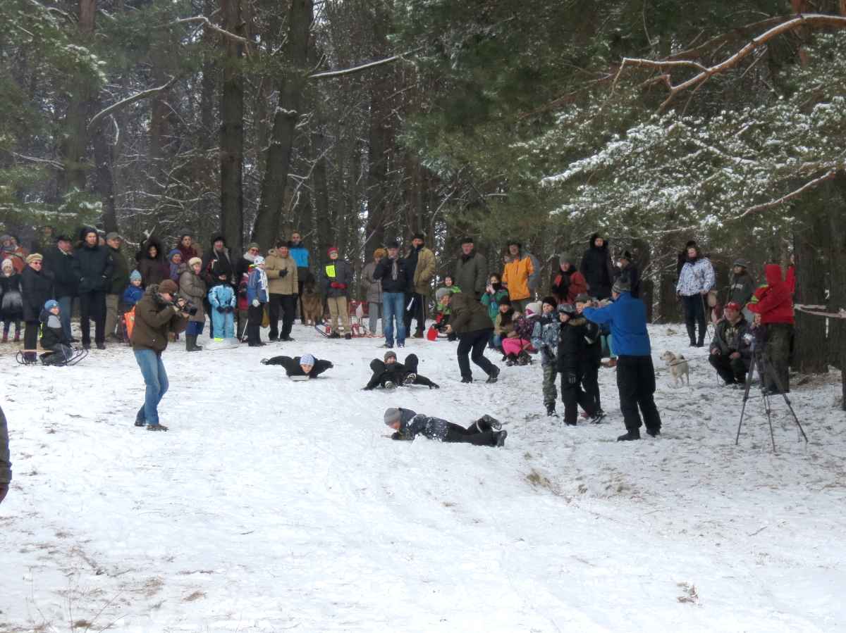 | Tu już zupełnie się nie dało konkurować w zjeżdżaniu! Torba na zakupy to niestety nie sanki, mimo odwagi jaką się wykazał maluch ! | ||