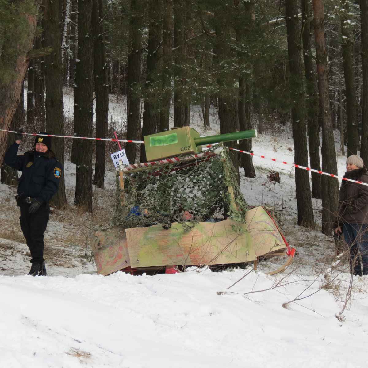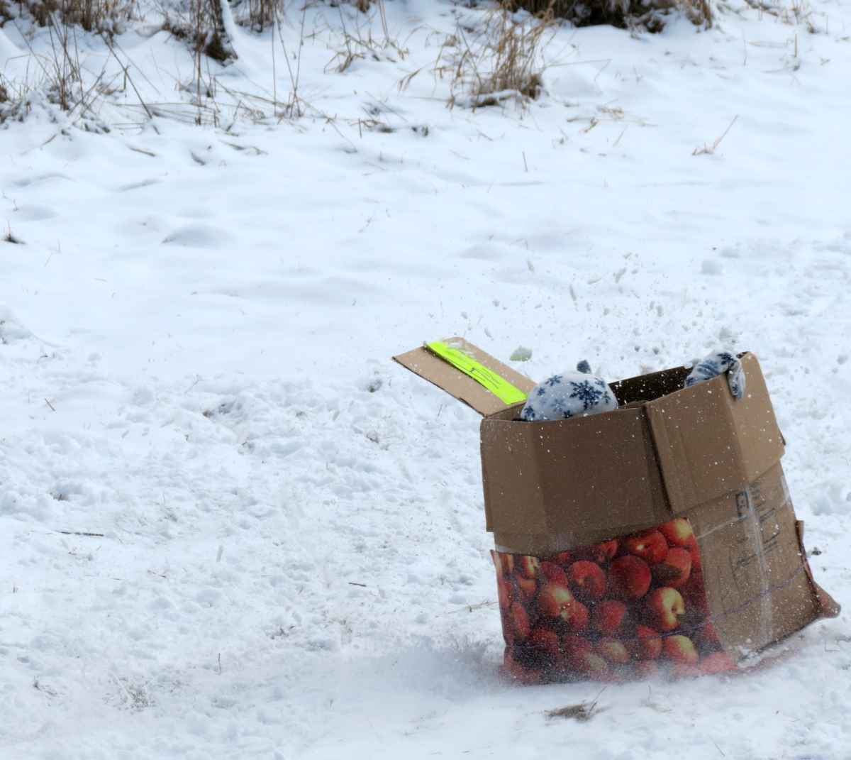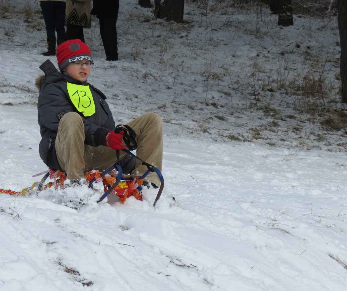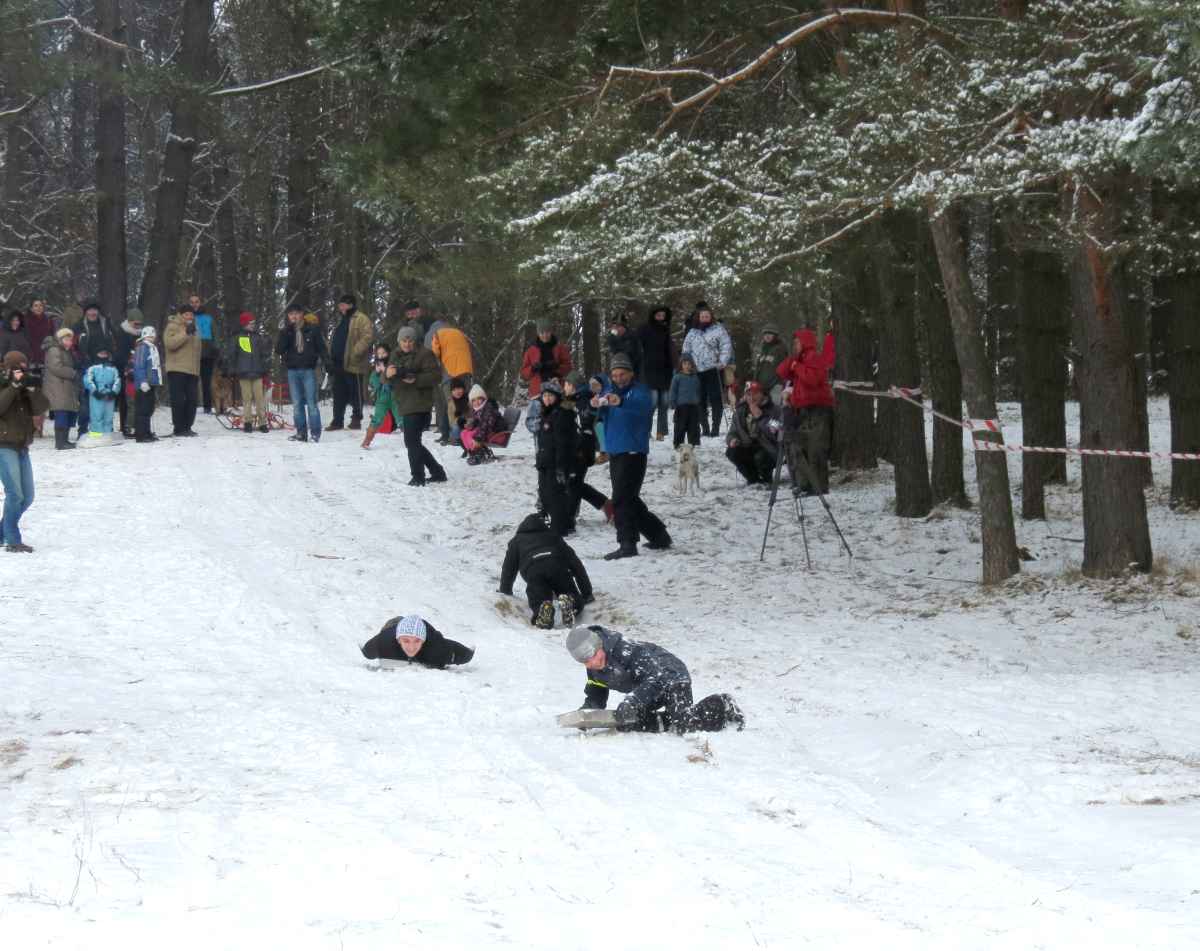 | Tu już zupełnie się nie dało konkurować w zjeżdżaniu! Torba na zakupy to niestety nie sanki, mimo odwagi jaką się wykazał maluch ! | ||
