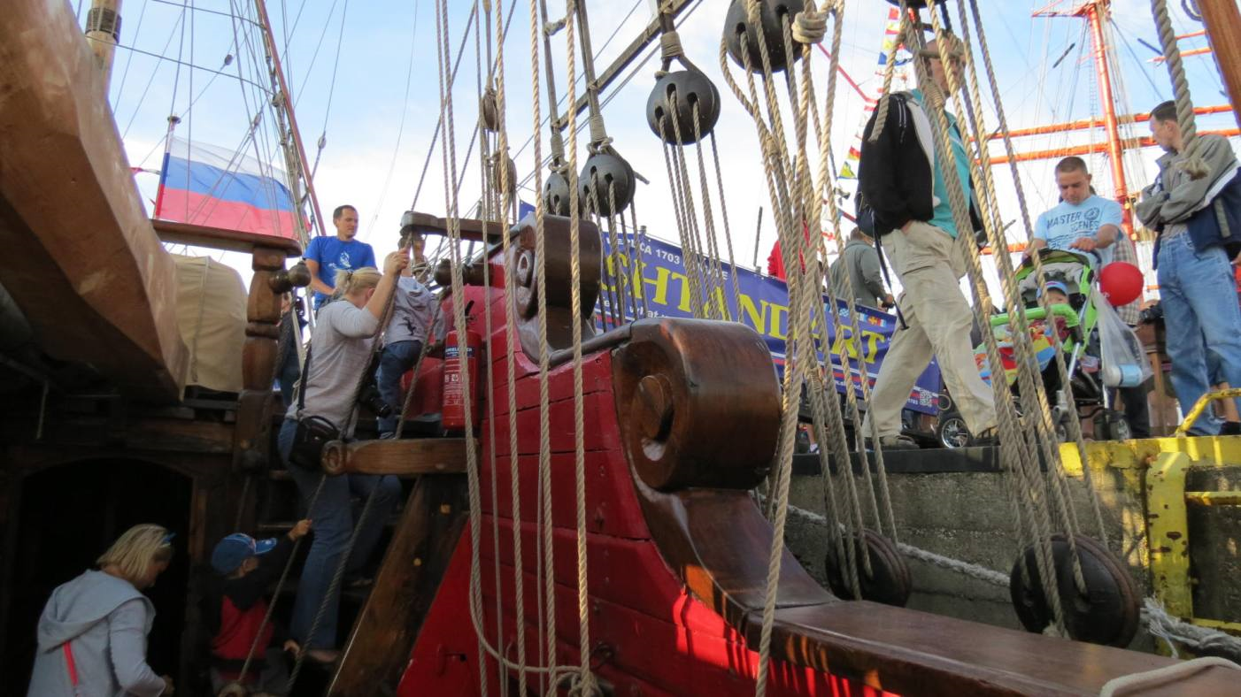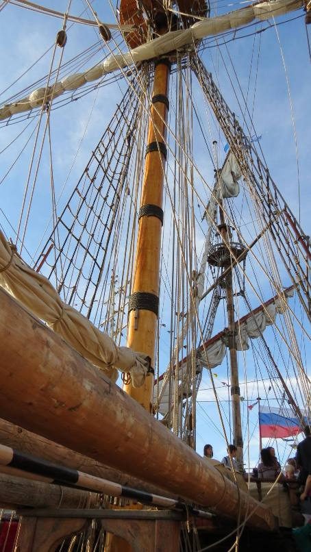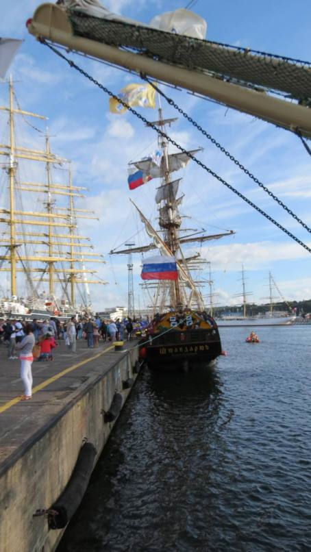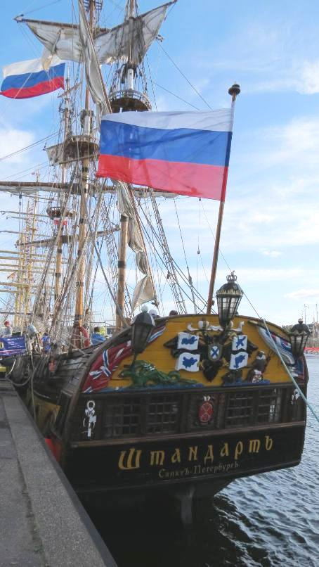 (cytat z Wikipedii): "Sztandart (ros. ????????, trans. ang. Shtandart, MMSI 273452840) - replika fregaty z 1703 r. - okrętu flagowego rosyjskiej floty zaprojektowanego przez cara Piotra Wielkiegoi zbudowanego przy jego udziale. Inicjatorem odbudowy żaglowca i jednocześnie jego pierwszym kapitanem jest rosyjski historyk Vladimir Martus. Dzięki pomocy historyka Victora Krajnyukowa udało się zebrać podstawowe informacje na temat konstrukcji i budowy fregaty. Pomimo posiadania jedynie XVIII-wiecznej ryciny ukazującej Sztandart podczas bitwy, zdecydowano się na budowę repliki. Prace rozpoczęto 4 listopada 1994 r. Do budowy użyto tych samych materiałów i wykorzystano takie same techniki jak w przypadku pierwowzoru. Gwoździe (8 tys. sztuk) i okucia zostały ręcznie wyprodukowane, natomiast drzewa (250 szt.) zostały ręcznie ścięte na terenie parków w pobliżu Sankt Petersburga. Do budowy żaglowca użyto kilka rodzajów drewna w zależności od przeznaczenia: